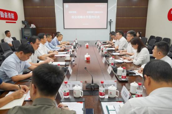 9月25日,我校与浙商银行湖州分行举行校企战略合作签约仪式,标志着双方在产教融合、人才培养、科研合作等方面迈入了一个全新的合作阶段。学校党委书记金波,党委副书记鲁伟权,浙商银行湖州分行党委书记、行长郦洪涛,副行长吕俊、邢彩娟出席并致辞。双方单位相关职能部门负责人参加仪式。