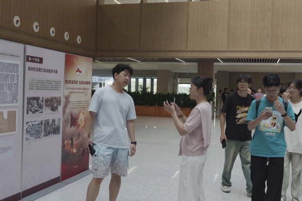 会后,全体参会人员集体前往学校师生活动中心与图书馆,参观南太湖抗战烽火图片展和抗战80周年湖州档案文献展流动展。通过观看珍贵历史图片与文献,与会人员深入学习抗战历史,接受爱国主义教育,进一步增强了责任意识与使命担当,为后续以更饱满的热情投身社团工作、传承红色基因奠定思想基础。