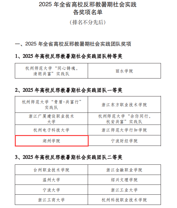 近日,由浙江省高等教育学会思想政治教育分会、浙江省学生联合会、浙江省反邪教协会共同主办的2025年浙江省高校反邪教暑期社会实践现场评审会议在杭州市举行。马克思主义学院“浙水涤邪跟党走,湖山先锋扬正气”实践团荣获一等奖。