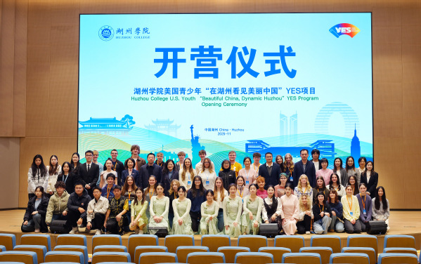11月22日,由中国教育国际交流协会、浙江省教育国际交流协会指导,湖州学院与美国俄亥俄州教育部门联合举办的教育部YES项目“在湖州看见美丽中国”美国青少年来华交流学习团一行到访湖州学院,参加为期一周的中华文化交流学习活动。湖州市教育局党委委员、二级调研员蒋立杰,湖州市外办党组成员、市友协专职副会长窦锋,湖州中学副校长皇甫莹及学校相关职能部门、二级学院负责人出席开营仪式。副校长沈月娣主持仪式。