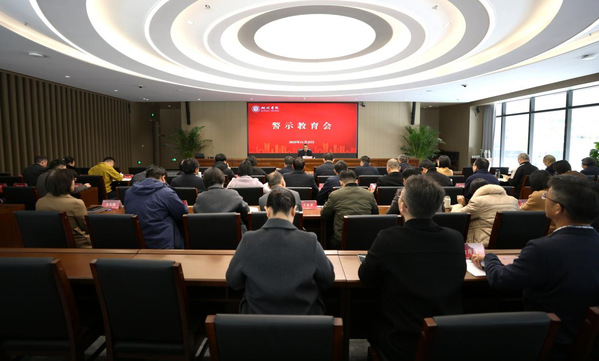 为进一步强化党员领导干部廉洁自律意识和拒腐防变能力,11月25日,学校召开警示教育会,集中观看警示教育片,深化以案说德、以案说纪、以案说法、以案说责。校领导班子成员和全体中层干部参加会议。