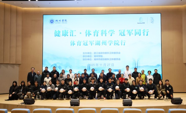 初冬校园暖意融融,青春赛场激情涌动。11 月 27 日下午,“健康汇・体育科学 冠军同行”体育冠军湖州学院行活动在我校隆重举行。省政协教科卫体委专职副主任、分党组副书记刘红祥,校党委书记金波,湖州市政协副主席李全明,省政协委员、体育界界别组组长、浙江体育科学研究所(浙江省反兴奋剂中心)所长潘华群等浙江省政协、湖州市政协领导与各位体育冠军携手莅临,与我校师生代表共赴体育之约,传承拼搏精神。活动由我校党委副书记鲁伟权主持。