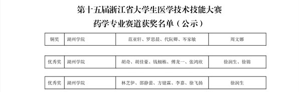 近年来,为深化制药工程专业人才培养模式改革,推进“以赛促学、以赛促教”育人机制,生命健康学院积极构建“校—省”两级药学竞赛体系,在省级赛事中屡获突破,在校内营造了浓厚的学科竞赛与专业实践氛围。今年学院组建了三支队伍参加第十五届浙江省大学生医学技术技能大赛药学专业赛道。我校代表队凭借扎实的药学理论基础、规范的操作技能和出色的团队协作,最终荣获铜奖1项、优秀奖2项。
