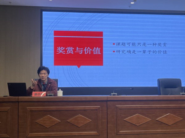 讲座中,姜亦炜以“奖赏与价值:课题申报与论文写作”为主题,围绕选题、起首、论述以及写作前的准备等方面展开实务讲解。他结合自身丰富的科研经验与典型案例,细致拆解各环节实用技巧,内容针对性强、可操作性高,有效破解了辅导员在课题申报与论文写作中的常见难题,精准对接辅导员科研需求。
