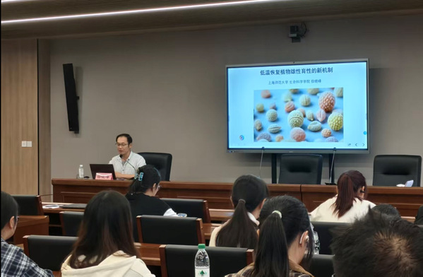 徐晓峰聚焦植物雄性生殖发育过程,重点阐释了低温环境下植物恢复雄性育性的新机制。他结合自身研究成果,从分子与细胞层面系统解析了植物在低温胁迫下,如何通过多级调控机制恢复雄性育性,从而保障繁殖过程的顺利完成。报告内容充实、数据翔实,不仅揭示了植物应对逆境胁迫的精妙适应策略,也为植物生殖生物学研究及农业生产中低温灾害的防控实践提供了重要的理论依据。