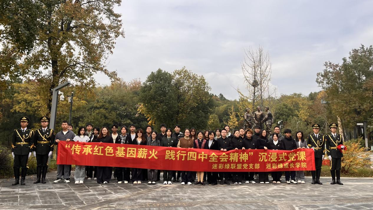 • 为深入学习贯彻党的二十届四中全会精神,厚植爱国主义情怀,11月12日,迷彩绿联盟党支部联合迷彩绿成长学院代表,赴郎部抗日纪念馆开展党课活动,以沉浸式体验让红色基因融入血脉、让全会精神落地生根。活动以“传承红色基因薪火,践行四中全会精神”为主题,通过“实景+理论”的立体授课模式,让这堂党课既有历史的厚重感,又不失精神的感染力。在纪念馆的红色氛围中,迷彩绿成长学院退役大学生学员穿着常服,其他学员和老师穿深色上衣、深色长裤,全体党员佩戴党徽,面向党旗庄严列队。举起右拳、庄严宣誓,铿锵有力的誓言回荡在展厅之间,既是对入党初心的回望,更是对践行四中全会精神、传承红色血脉的郑重承诺。