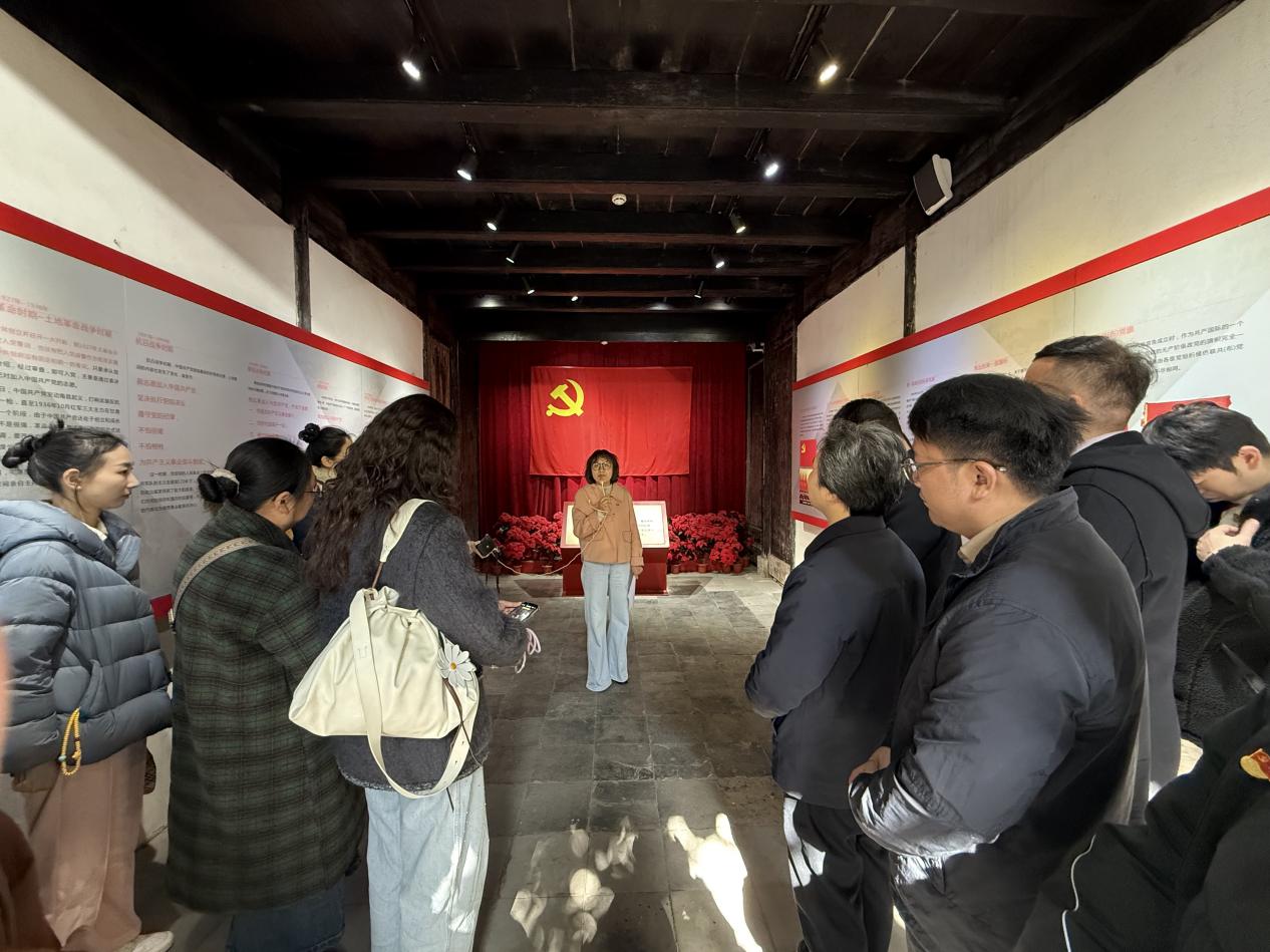 • 为深入学习贯彻党的二十届四中全会精神,12月6日,人文学院党委组织全体党员教师赴“苏南小延安”——太华山新四军和苏南抗日根据地纪念馆,开展“学习贯彻党的二十届四中全会精神”主题党日活动。校党委委员、副校长沈月娣全程参与并讲授专题党课。在纪念馆序厅的新四军指战员群像雕塑前,沈月娣围绕党的二十届四中全会“坚持以人民为中心的发展思想”“推动高质量发展”等核心要义,结合人文学院学科特点与就业工作实际,为全体党员教师讲授党课。她指出,人文学院应自觉将“扎根群众、敢打硬仗”的铁军精神融入育人实践,通过优化课程体系、搭建实践平台、深化校企合作等举措,破解人文专业就业结构性矛盾,培育契合经济社会发展需求的复合型人才。她强调,学院在“十五五”期间要重点对接区域文化产业、公共服务等领域需求,推动教学科研与地方发展深度融合。期间,全体党员参观了纪念馆六个主题展区。400余件珍贵的图文资料与实物生动再现了苏南抗日军民浴血奋战的峥嵘岁月。党员教师们认真聆听革命先辈“以信念立根、以奉献为民”的感人事迹,深切体悟“苏南小延安”所承载的崇高精神内核。此次党课实现了理论学习与红色教育的有机融合,既是一次深刻的党性淬炼,