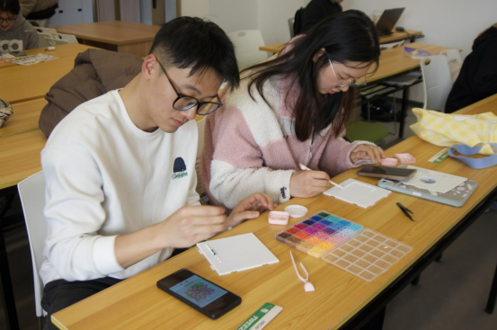 宣讲结束后,廉洁手工制作环节正式启动。工作人员现场为参与同学分发了色彩缤纷的拼豆、模板、镊子、助烫片等制作材料,详细讲解了拼豆的基础操作方法、颜色搭配技巧以及熨烫定型的安全注意事项。制作过程中,同学们兴致高昂、潜心创作,在一挑一放、一拼一摆间,将“廉洁”“莲花”“梅花”等承载着清廉寓意的元素融入作品,把抽象的廉洁理念转化为具象的手工创作。大家纷纷表示,拼豆的摆放如同做人,每一颗豆粒都要摆得端正,正如做人要坚守廉洁底线、行得端、走得正;廉洁主题拼豆活动让原本抽象的廉洁文化变得可触可感,在动手实践中更深刻地体会到严于律己、清廉自持的重要意义。